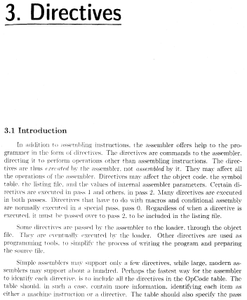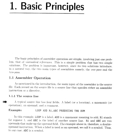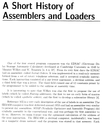 Assembler operation, two-pass, one-pass, absolute and relocatable object files, historical notes,